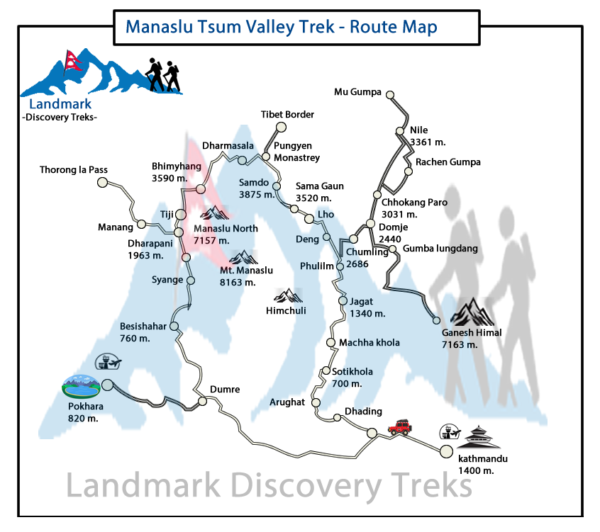 A scenic drive from Kathmandu through lush mid hill takes us to the trail head beyond Arughat at Soti Khola. And then the Manaslu Tsum valley trekking trail follows the forested route and crosses numbers of ridges and scattered village as it climb up to Philim. Here we witness traditional way of farming barley, maize, buckwheat and potatoes. We then follow the route of Chhekempar, Nile and Mu Gompa with incredible backdrop of Himalayans and discovery of authentic cultures. We have designed this 24 days Manaslu Tsum valley trek itinerary to allow proper acclimatization and exploration.
